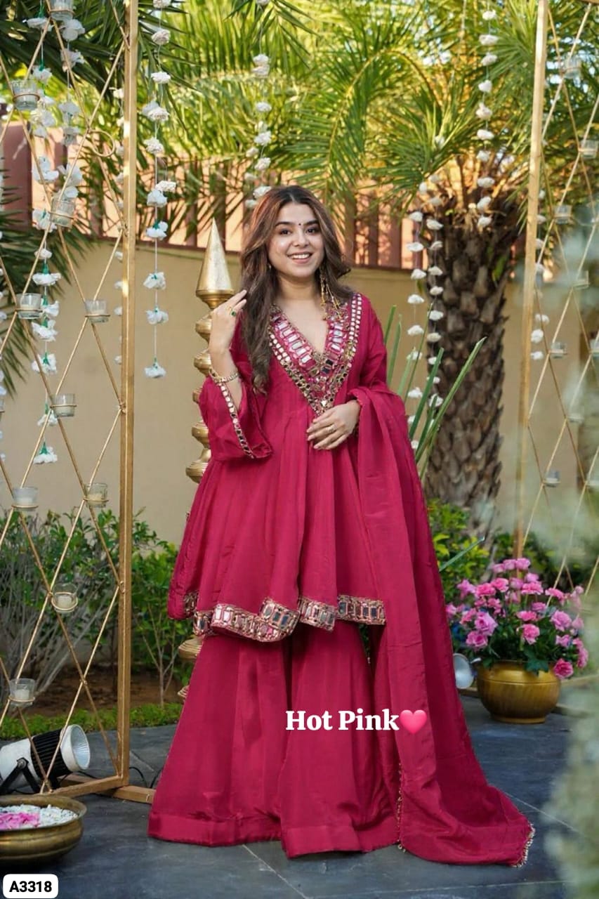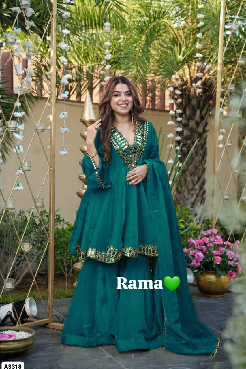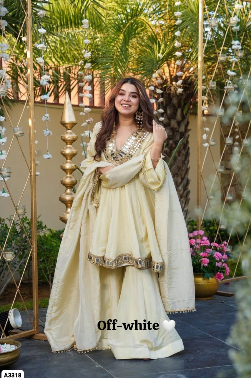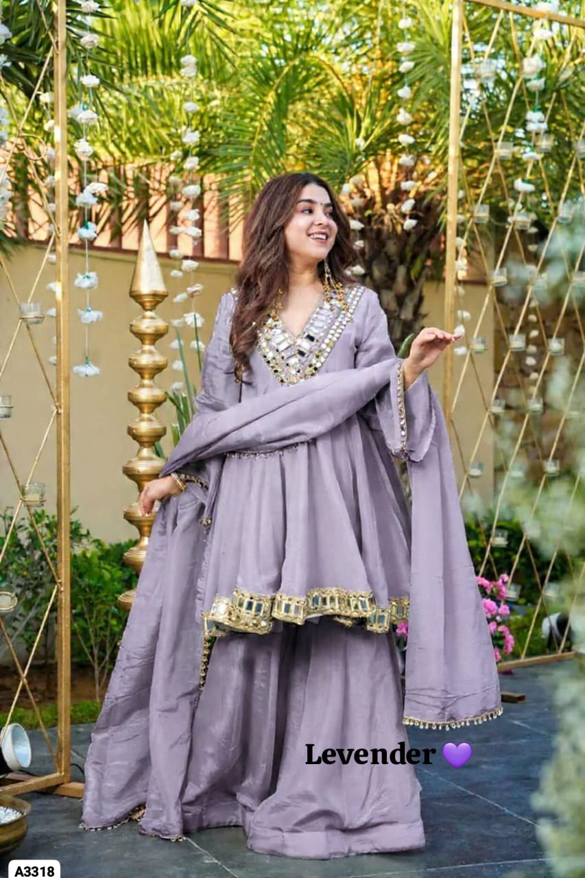 ✨ *Presenting Beautiful Heavy quality Chinon Silk Fabric Designer Festive Wear 3-Piece Peplum Dress , Fully 3.25 m Flaired Top with 10 Kali with Crepe Lining.* ✨