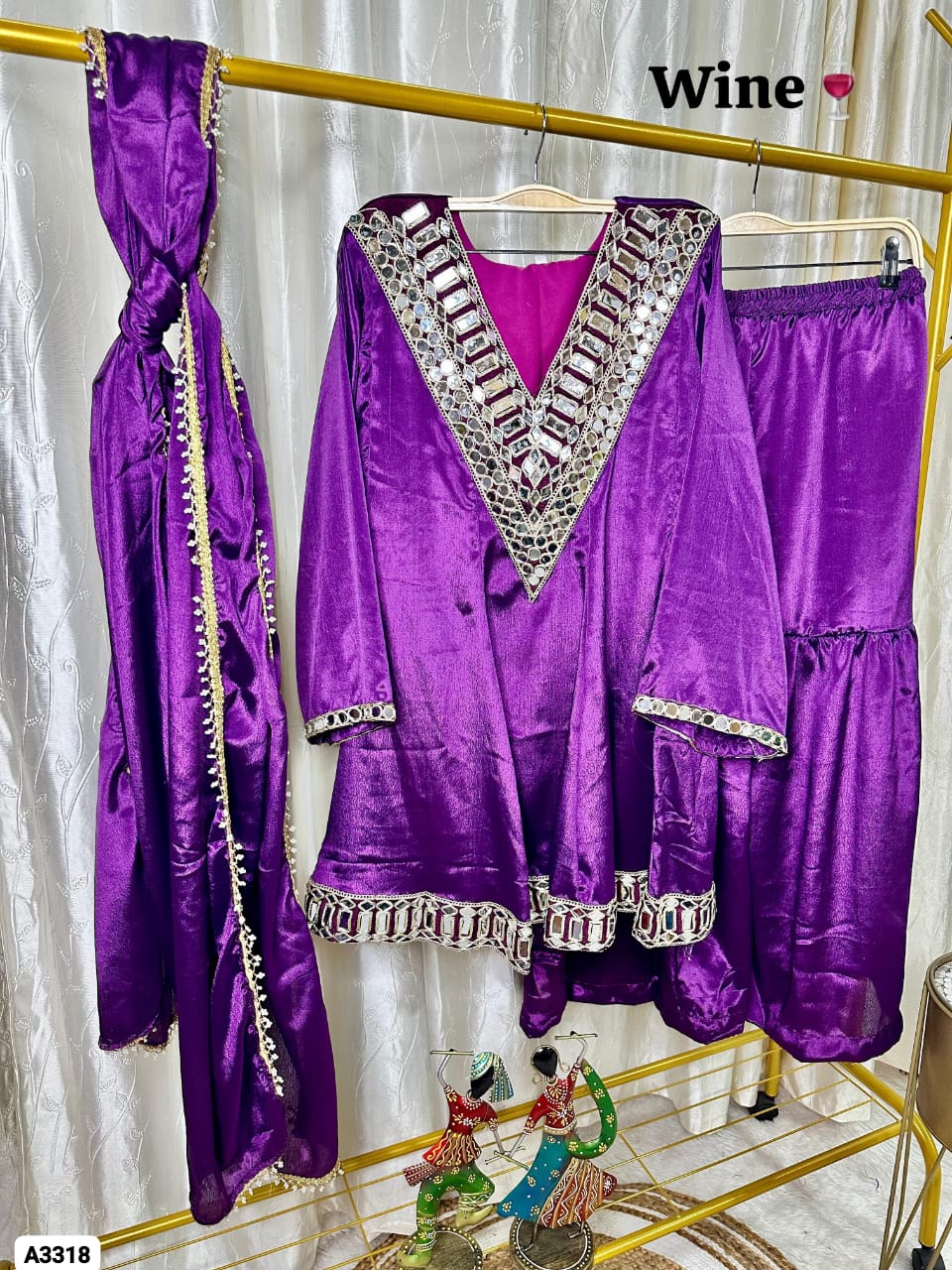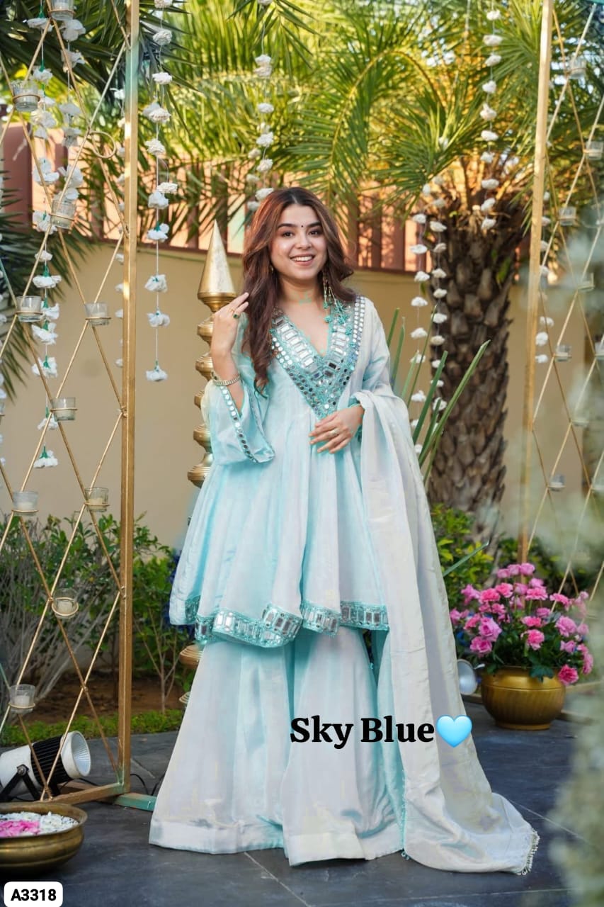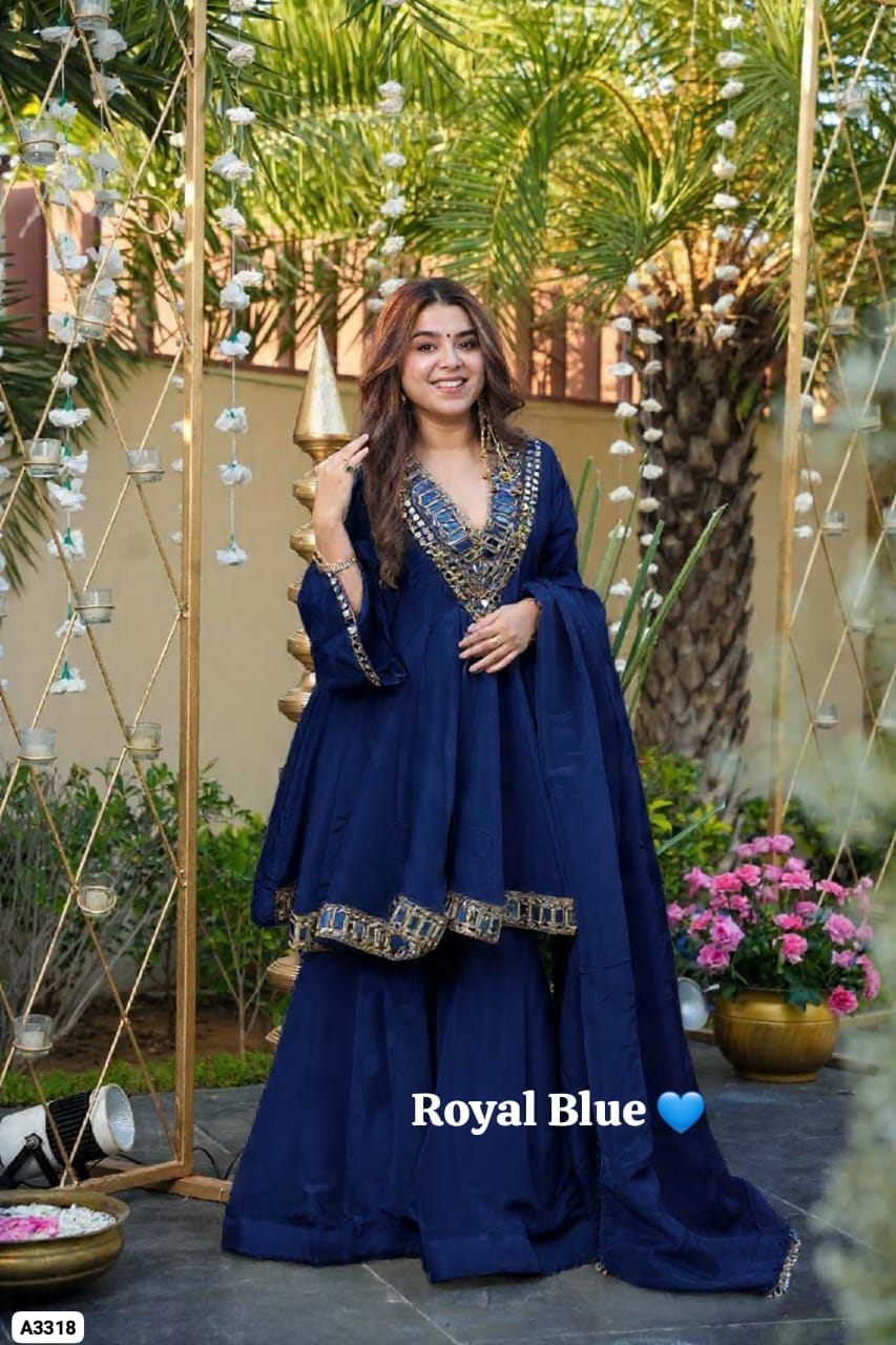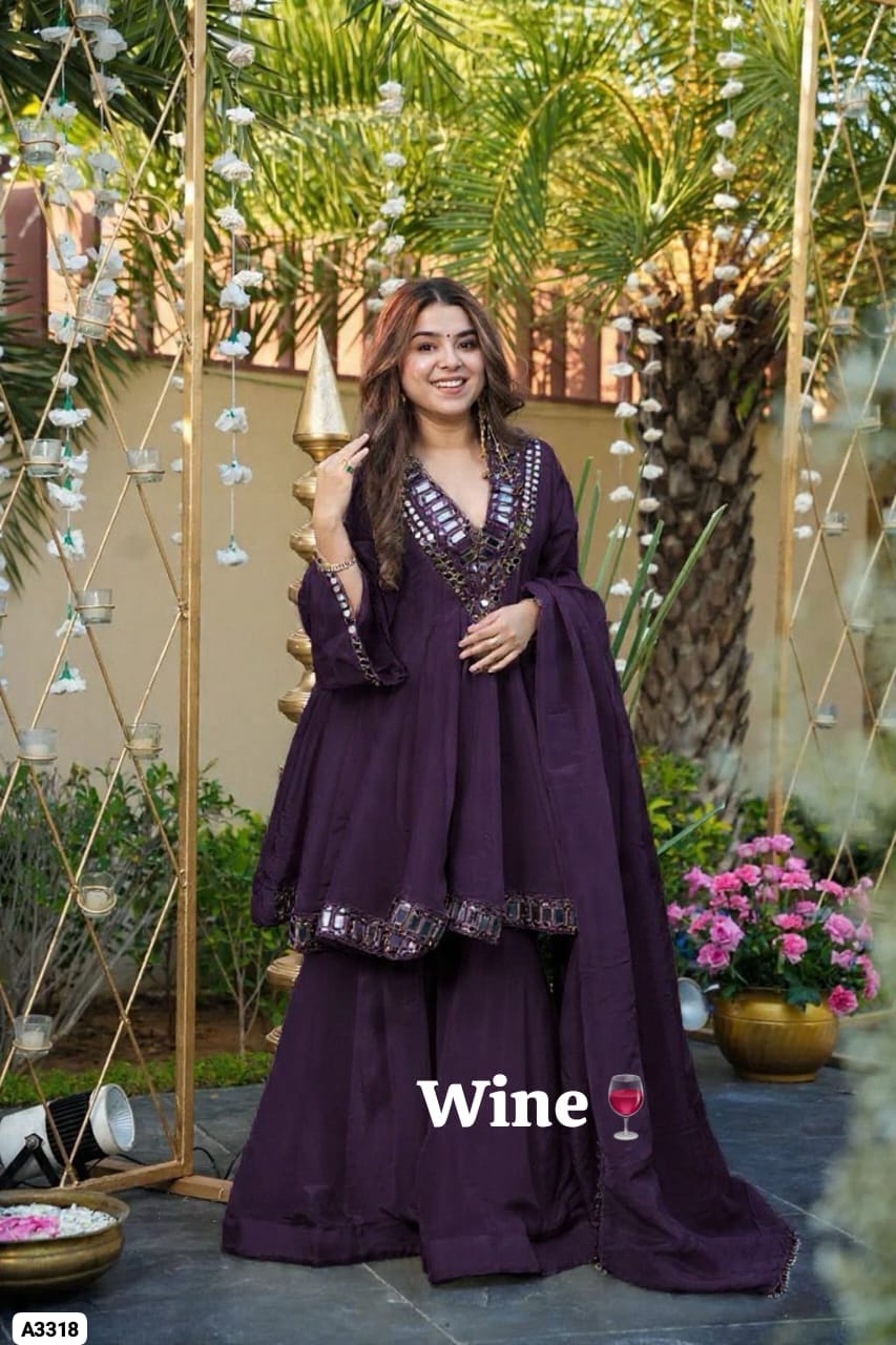 ✨ *Presenting Beautiful Heavy quality Chinon Silk Fabric Designer Festive Wear 3-Piece Peplum Dress , Fully 3.25 m Flaired Top with 10 Kali with Crepe Lining.* ✨