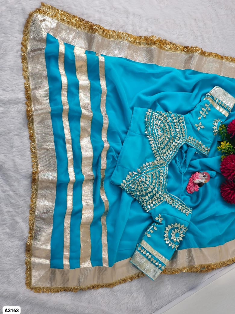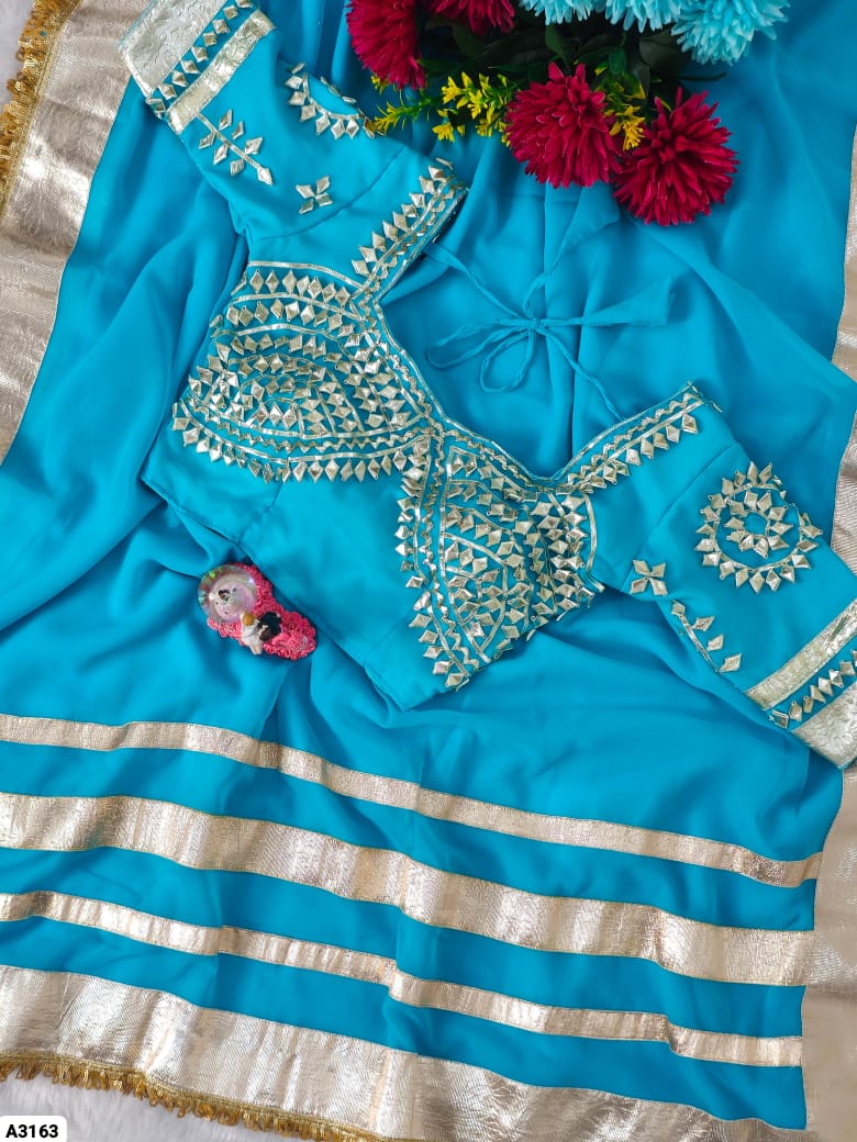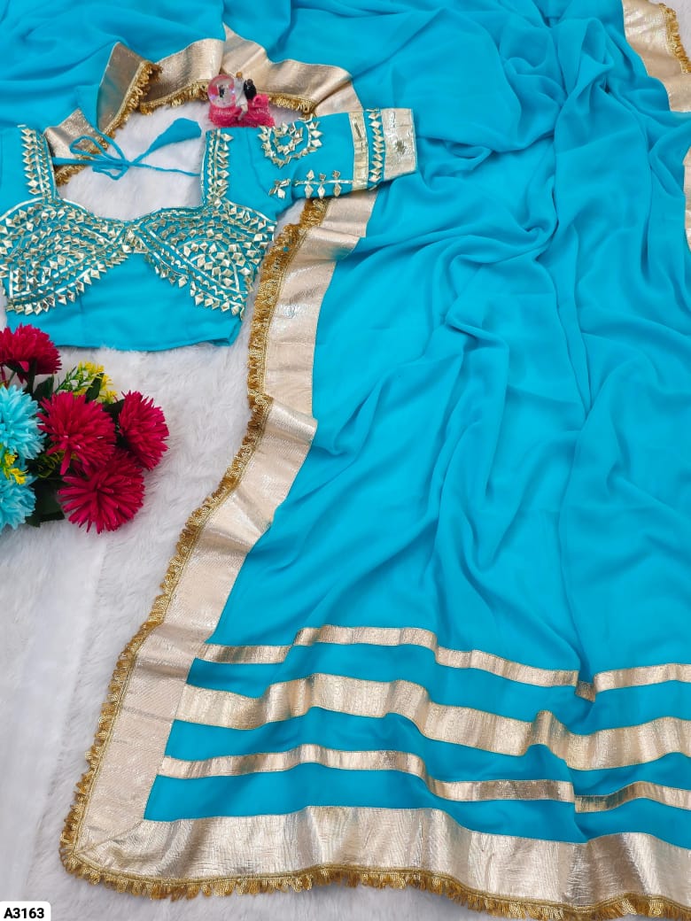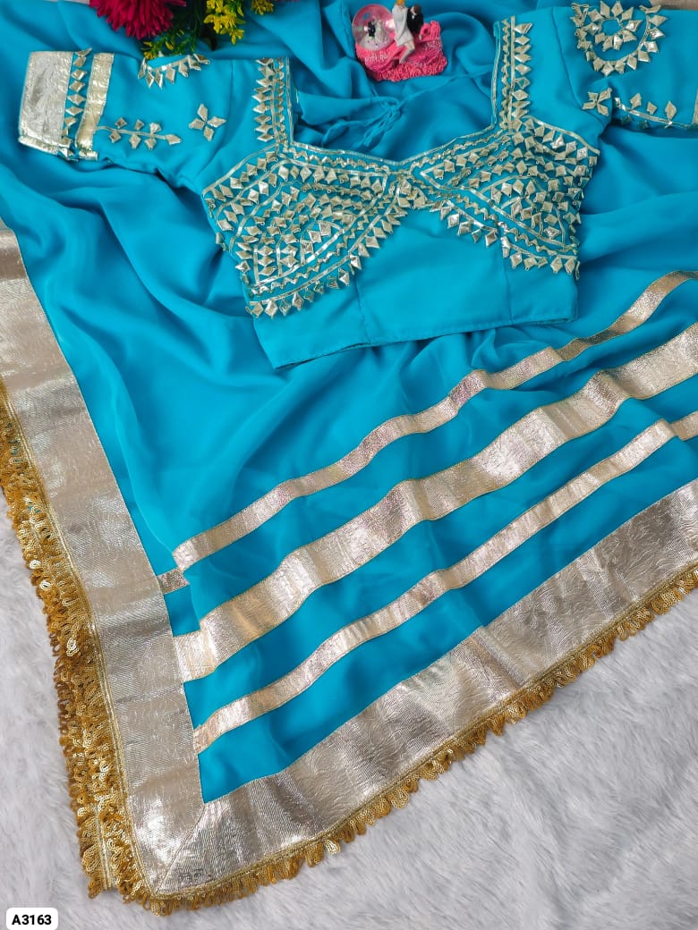 Fabric: Soft C*C Georgette Saree with 3-Inch Self-Design Big Gotta Patta On Full 9 Gaj Saree With Attractive Sequence Lace Border On Full Saree (5.5 Meters)