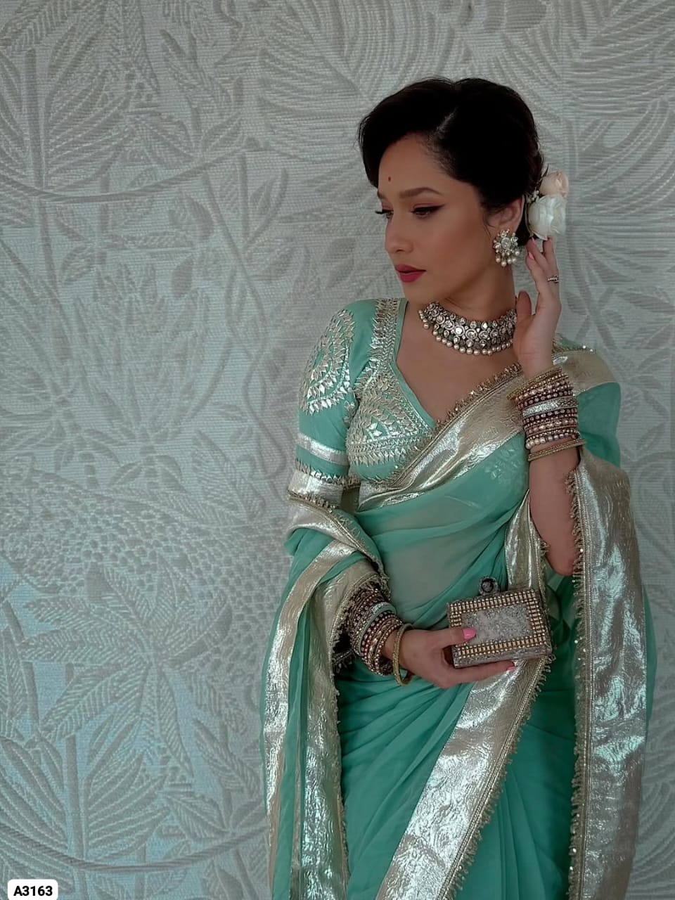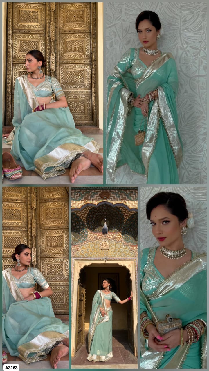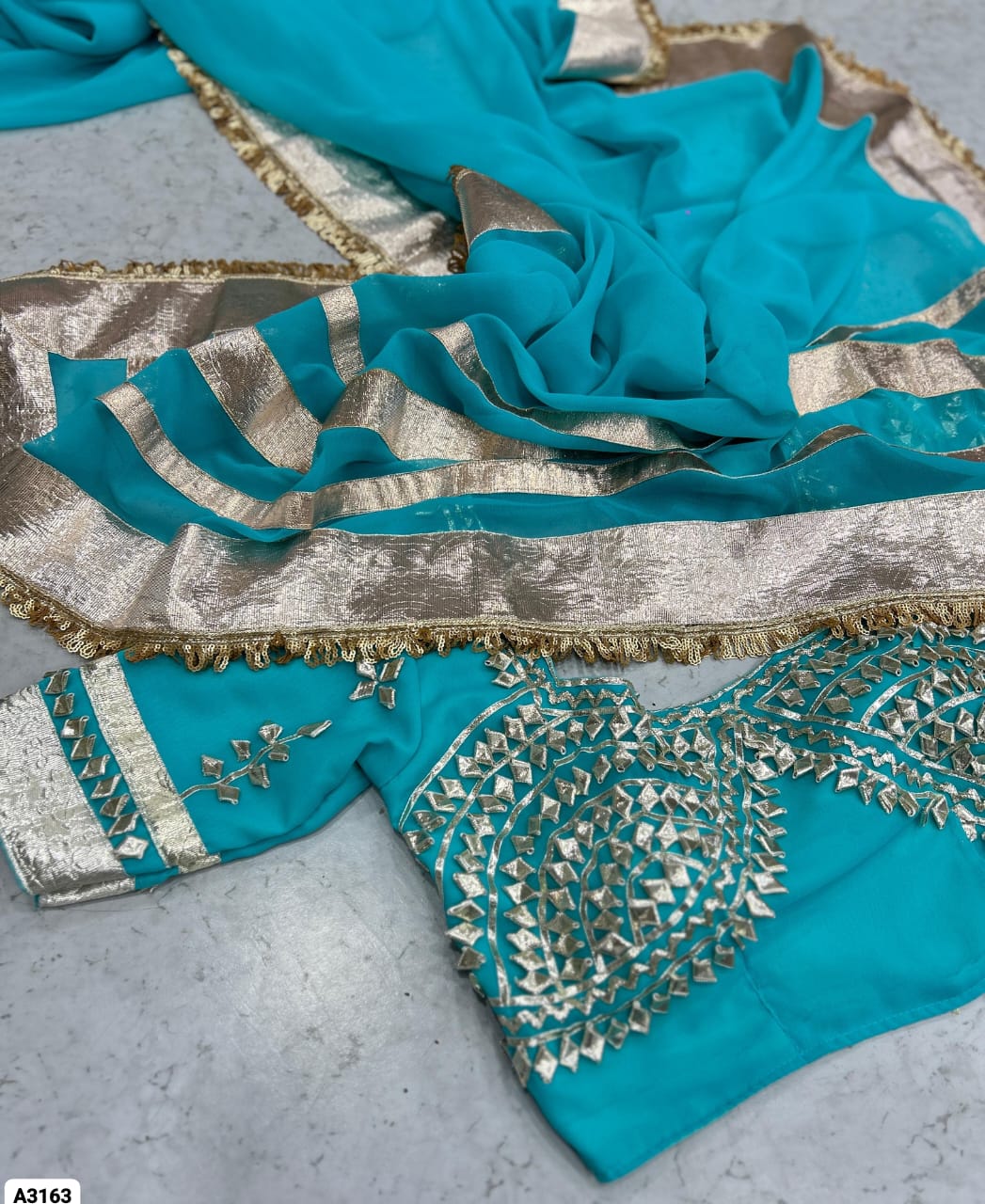 Fabric: Soft C*C Georgette Saree with 3-Inch Self-Design Big Gotta Patta On Full 9 Gaj Saree With Attractive Sequence Lace Border On Full Saree (5.5 Meters)