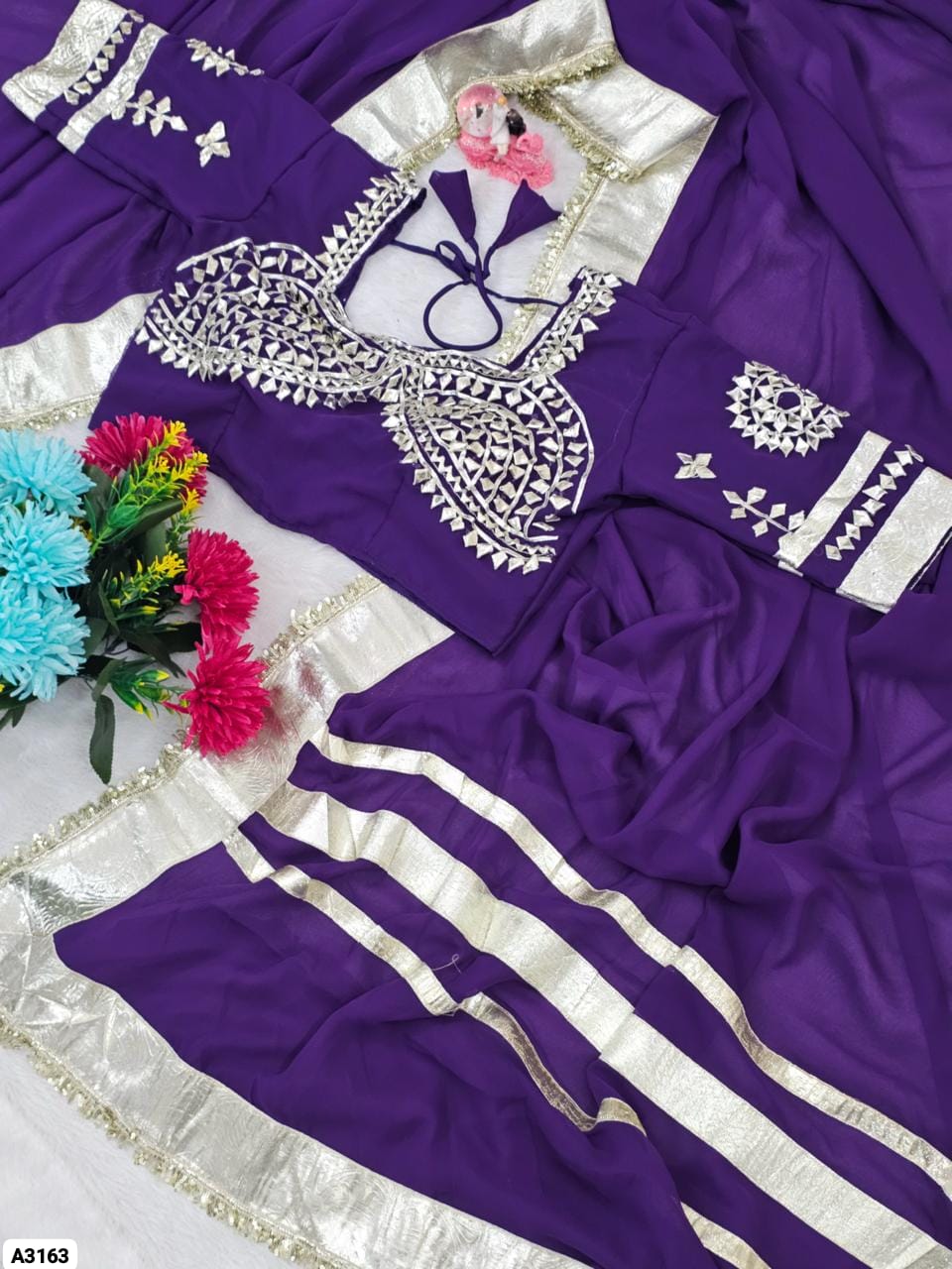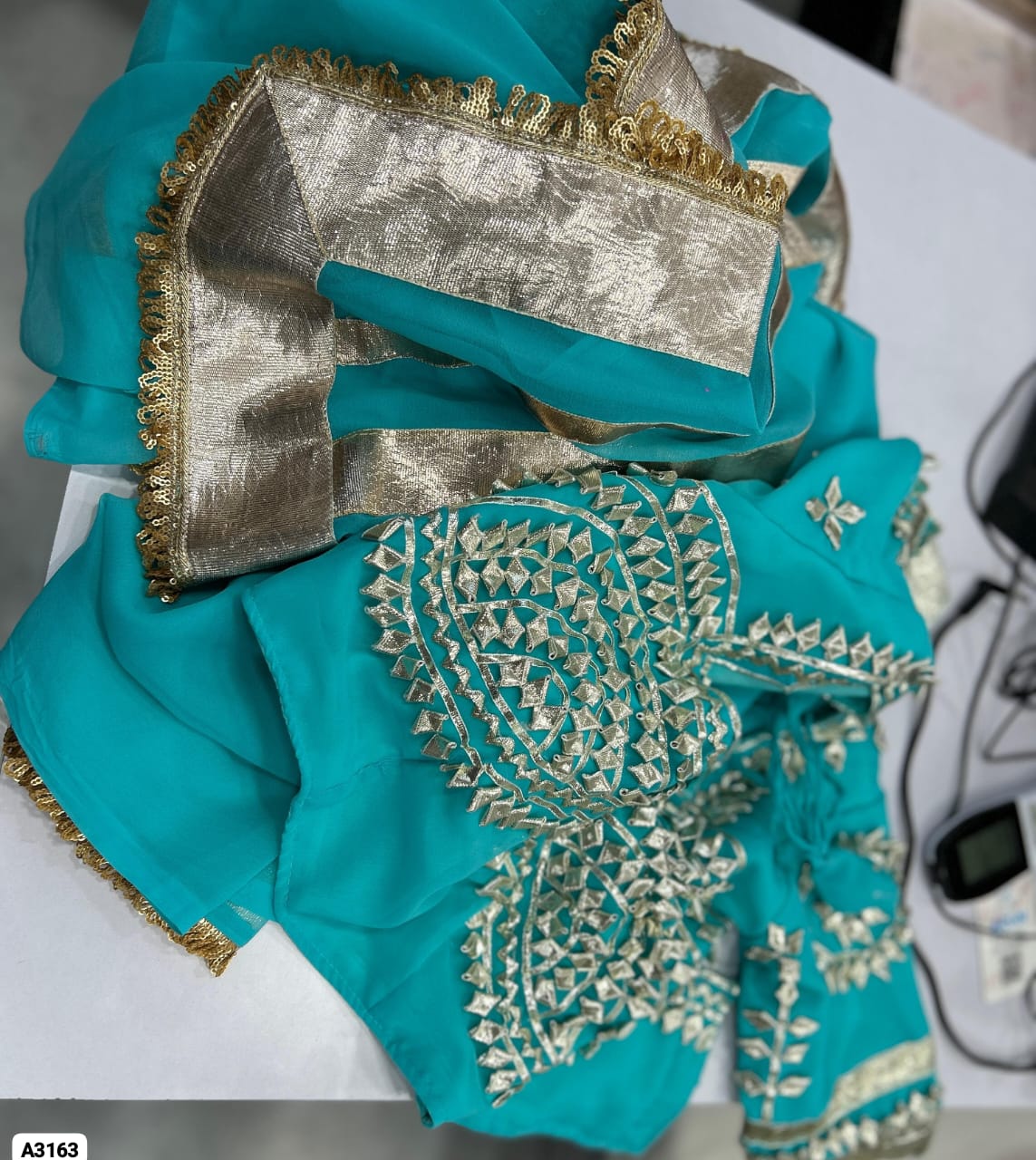 Fabric: C*C Georgette With Soft Aster Lining & Beautiful Original Heavy Hand Charkhi Gotta Patti Work (Fully Stitched 40″ + 2″ Margin)
