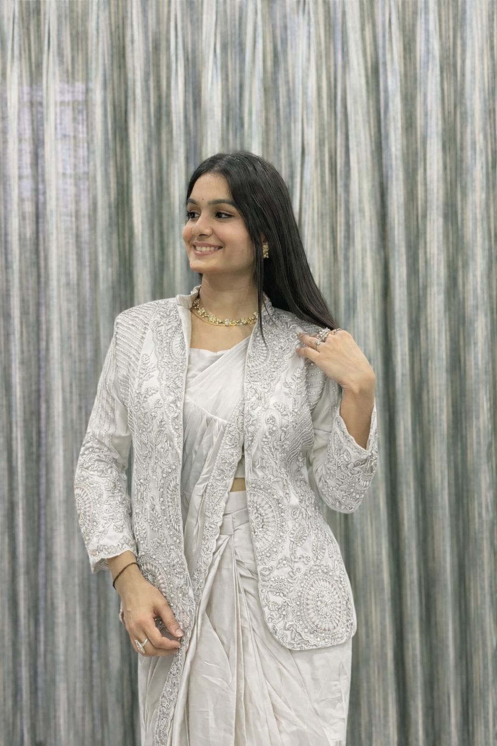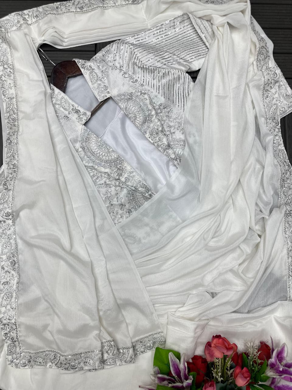 New Super Trending Embroidery Sequence work-ready-to-wear saree with full koti
