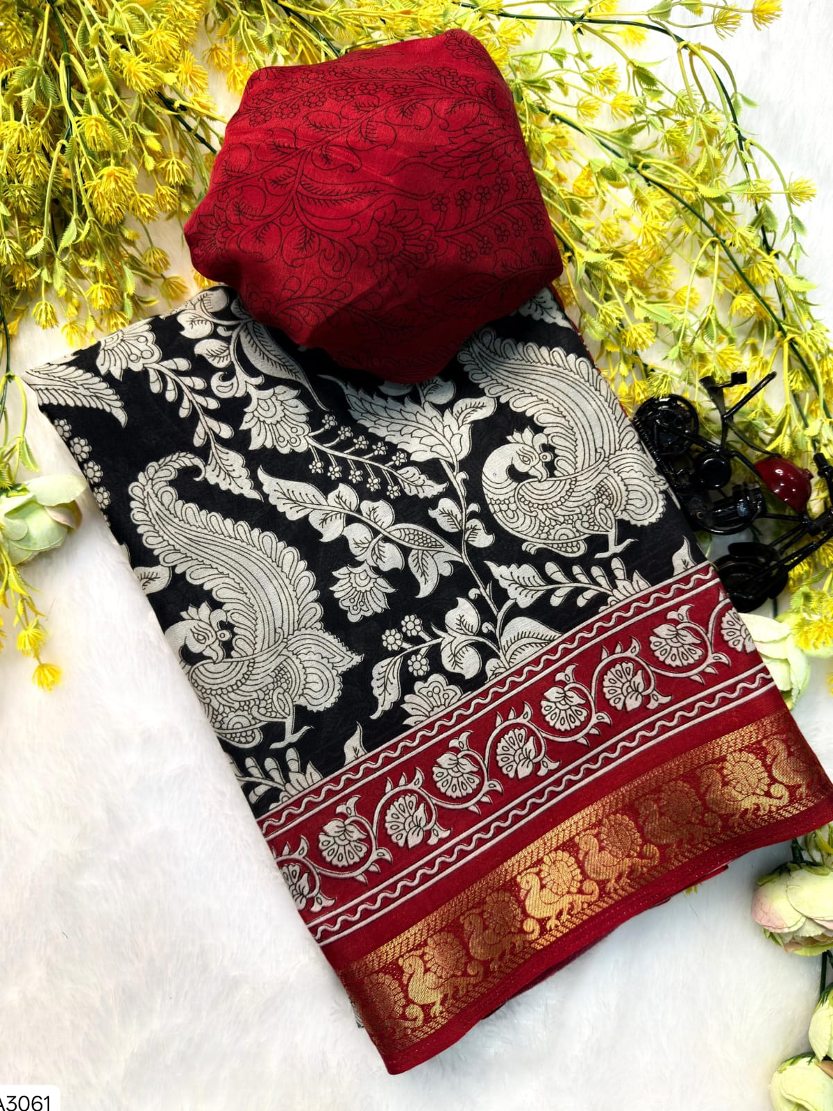 Soft mul mul cotton silk sarees with pen* *kalamkari design*