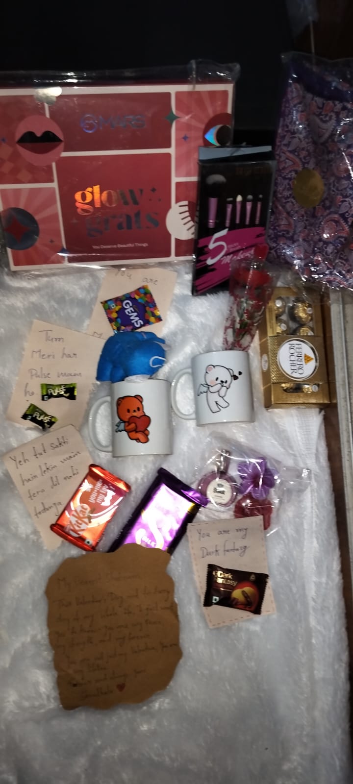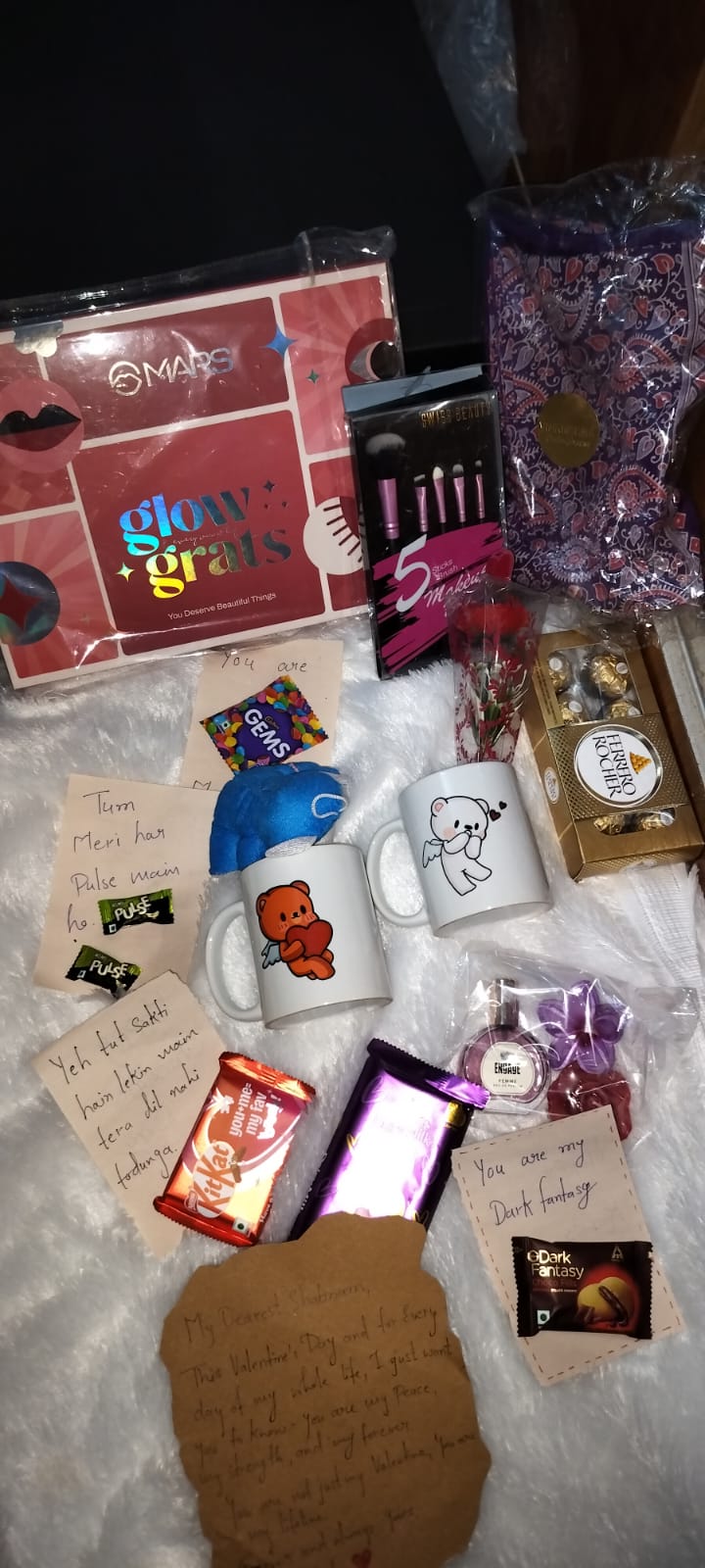 • Chocolates: A mix of indulgent treats like Dark Fantasy, Cadbury Silk, and 5 Star Crunchy makes the hamper feel celebratory and sweet. The personalized messages on the wrappers (“You melt my ♥” and “It’s crunchy time!”) enhance the emotional connection.
