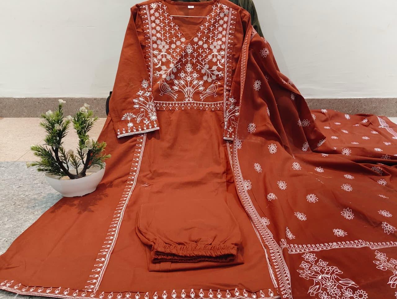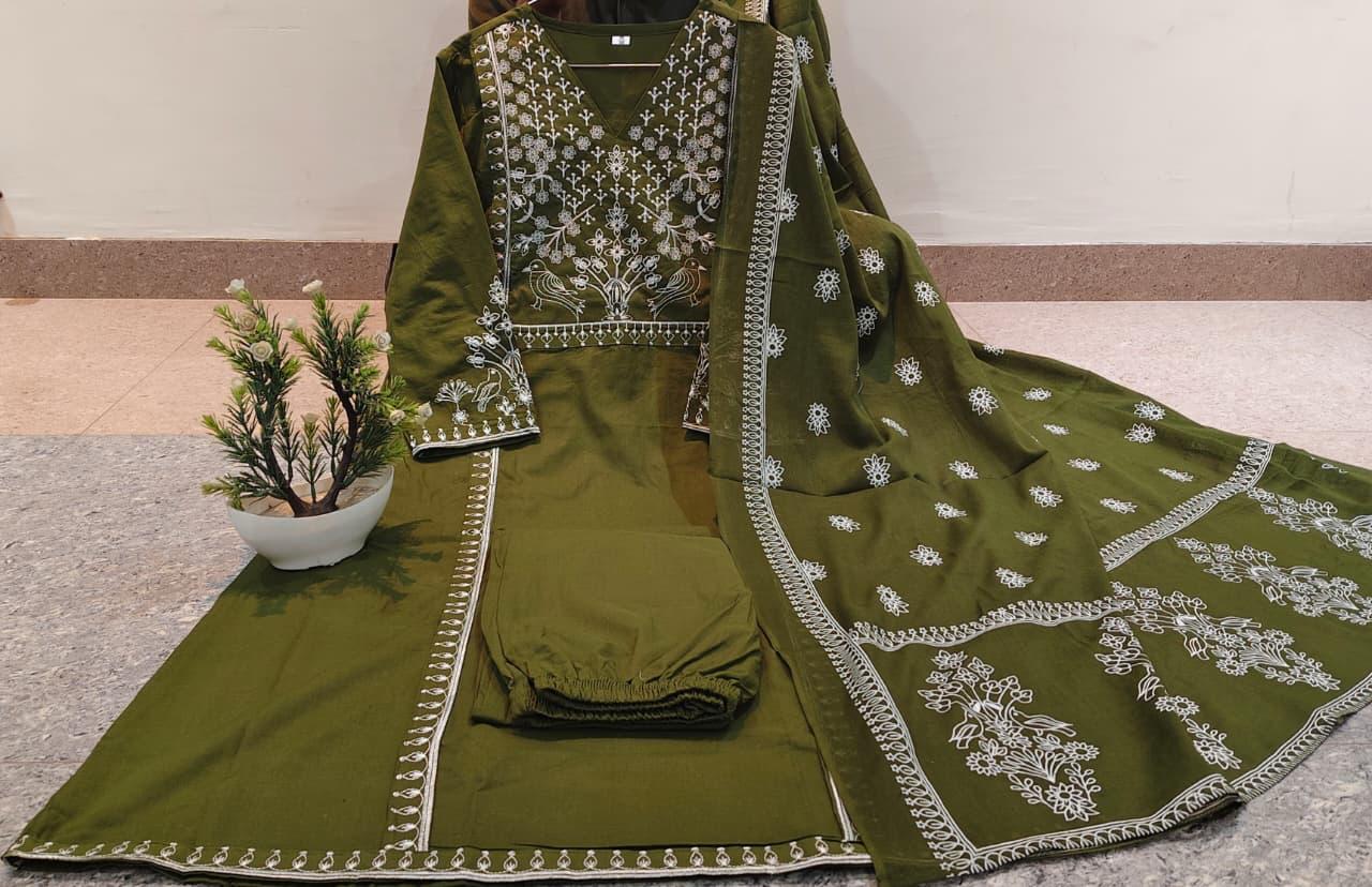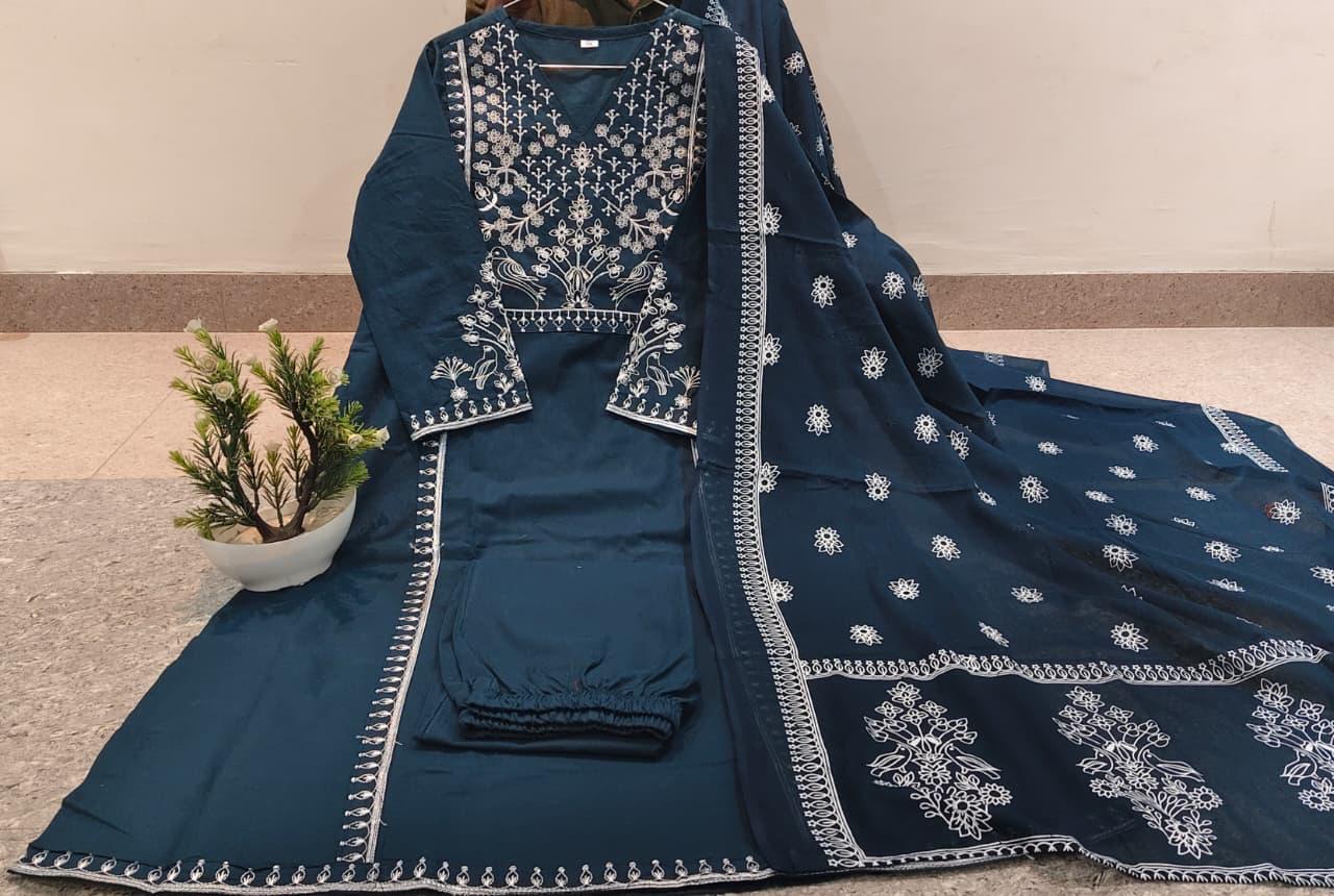 Enhance your ethnic style with this Thread Work Suit. Featuring intricate embroidery and elegant design, it’s perfect for daily wear, festive occasions, and parties.