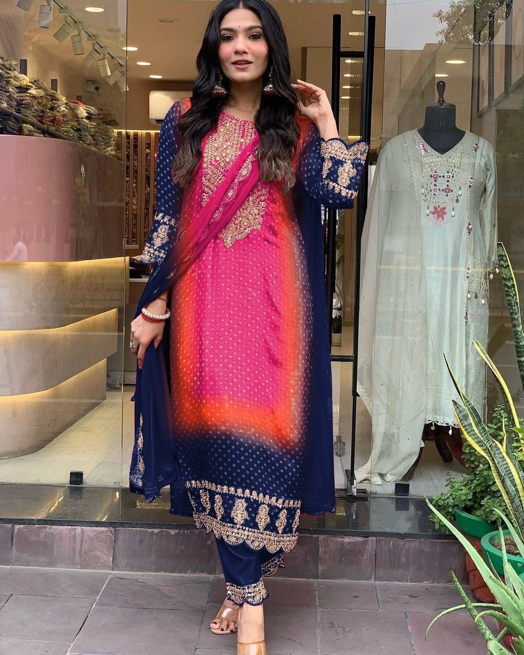 •Work: Beautiful coding & sequence work with real mirror detailing and digital print for a glamorous look